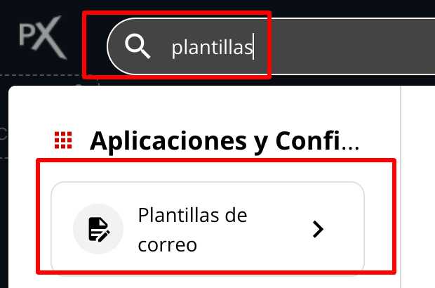 1- Buscar la aplicación Plantillas de Correo desde el buscador superior, y hacer click en la tarjetita de la aplicación
