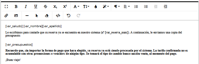 10- Contenido Dinámico: Permite cargar información en el cuerpo del mensaje que varía reserva a reserva.