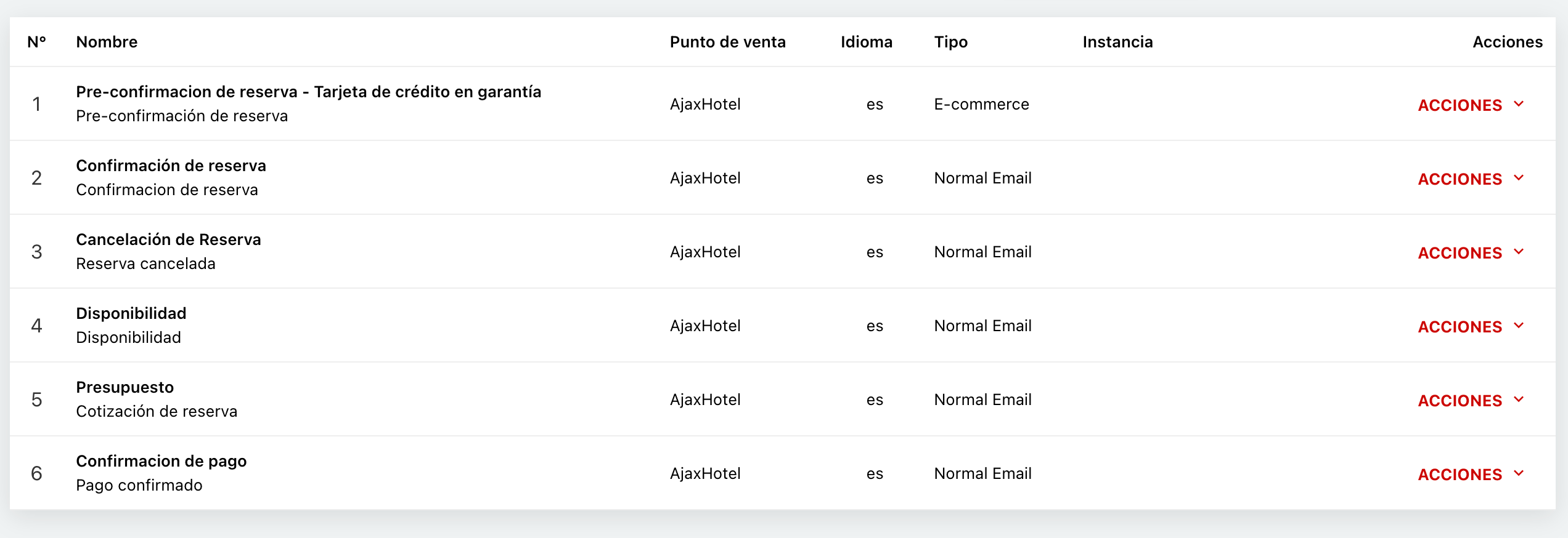 - Idioma: Define el idioma de la plantilla para asociarla a reservas.