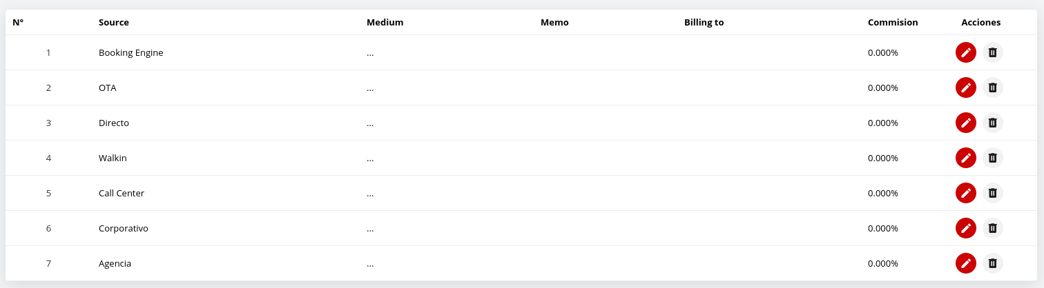 Icono de eliminar en la columna Acciones