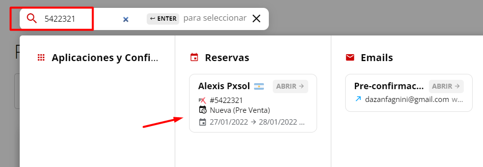 Búsqueda de reserva por número de reserva.