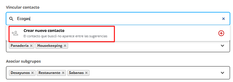 En caso de no encontrar el contacto que se desea vincular, se puede crear un nuevo contacto desde el mismo listado de búsqueda desde Crear Nuevo Contacto