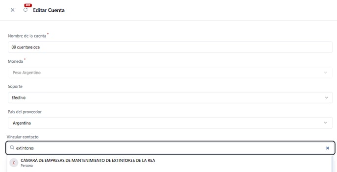 Se abrirá el formulario de creación de contacto de Tipo Empresa y luego de crearlo quedará vinculado a este Proveedor.