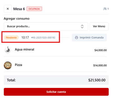 El sistema enviará automáticamente la comanda y marcará la comanda como pendiente.