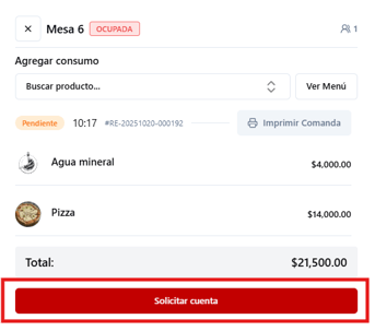 🔵 Cuenta solicitada: el cliente pidió la cuenta, pendiente de cierre.