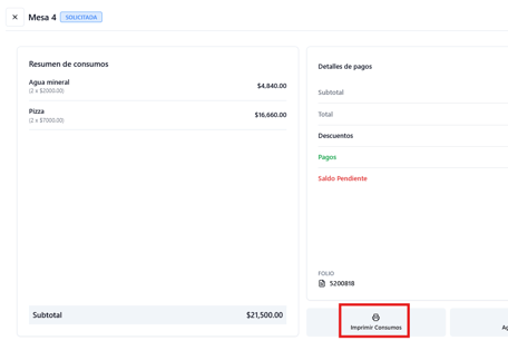 ¿Cómo imprimir el ticket de consumos?