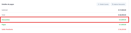 El descuento se reflejará automáticamente en el resumen de la cuenta.