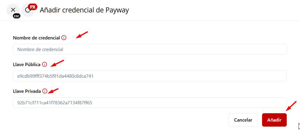 - Para integrar se necesitan los siguientes datos que el cliente debe solicitar a Payway: