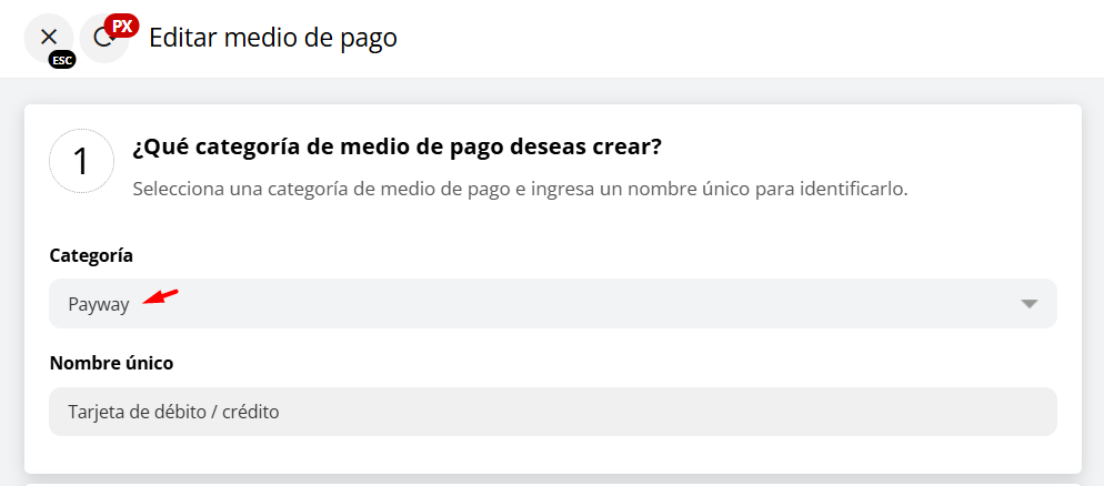 6 - Dirígete a la aplicación “Medios de Pago” y creá un nuevo medio con la categoría Payway. ¿Cómo crear el medio de pago para Payway?