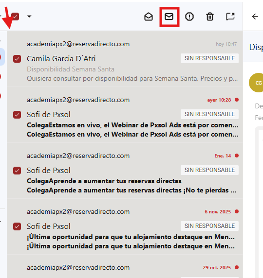 - Selección manual: Haz clic en la casilla de verificación de cada correo que desees modificar.