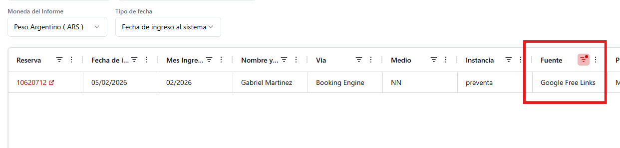 Free links: Indica que la reserva proviene directamente de los enlaces gratuitos de Google.Free links chat: Señala que, además de venir de Google, el huésped interactuó con el Widget de Chat de tu motor antes de concretar la compra.