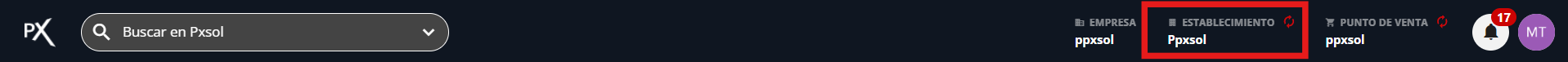 Haz clic en “Establecimiento” ubicado en la esquina superior derecha de la pantalla.