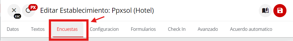 Acceder a la configuración del establecimiento
