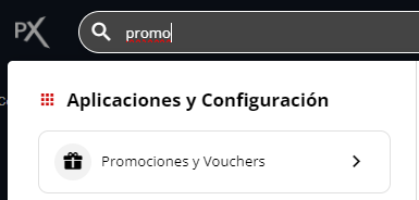 Desde el buscador, ingresa a la aplicación “Promociones y Vouchers”. Captura de pantalla mostrando la búsqueda de la aplicación "Promociones y Vouchers"