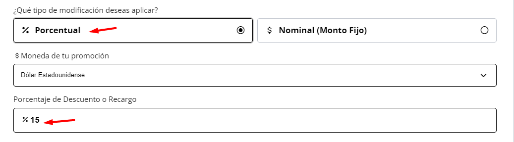 PASO 4: Configurar tipo de promoción y aplicación