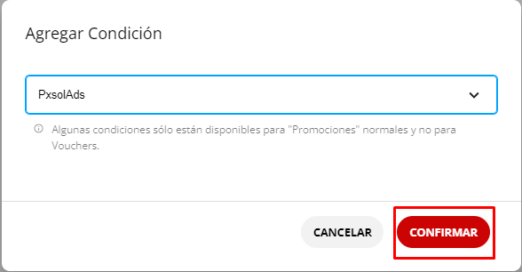 Agregar condiciones a la promoción