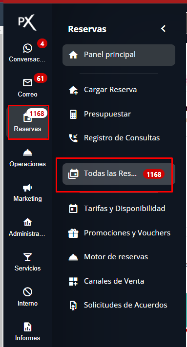 Menú de Navegación: Navega a través del menú de la izquierda: “Reservas” > “Todas las reservas”. Podrás buscar por instancias o revisar la lista.