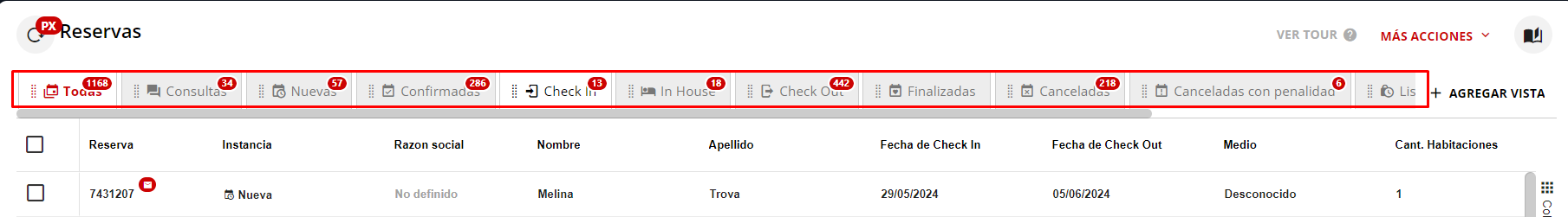 Búsqueda: Utiliza la lupa de búsqueda e ingresa el número o nombre de la reserva.