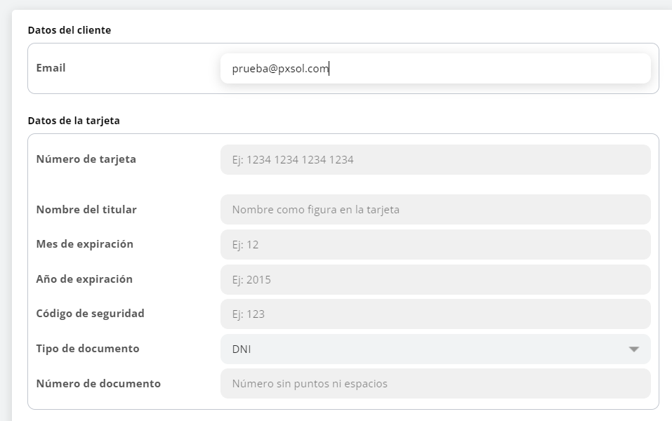 Rellena los campos requeridos con la información de la tarjeta.