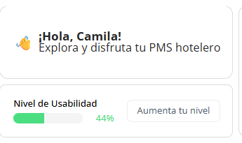 Este indicador evalúa el grado de aprovechamiento de las aplicaciones contratadas. Un nivel alto asegura que estás utilizando todas las herramientas disponibles para maximizar la eficiencia de tu hotel. Si deseas mejorar tu nivel y optimizar tus procesos, haz clic en el botón “Aumenta tu nivel”. Tu ejecutivo de cuenta (CSM) recibirá la solicitud y te contactará para brindarte asesoría personalizada.