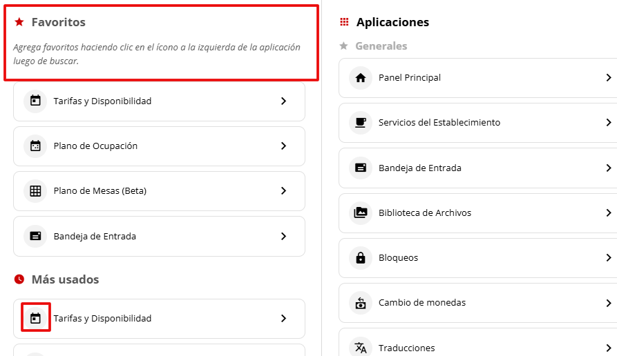 Personaliza tu espacio de trabajo configurando accesos directos a las herramientas que más utilizas (como Reservas, Informes o Conversaciones). Puedes tener hasta 4 accesos directos activos.1