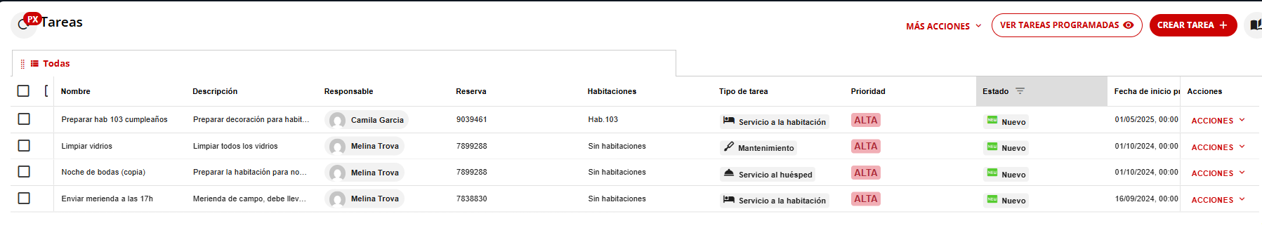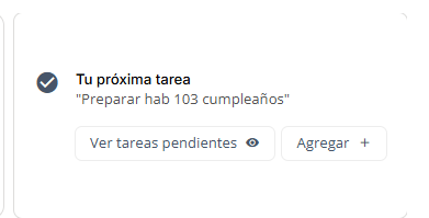 El panel te permite visualizar tus próximas tareas pendientes para mantener un control riguroso sobre las operaciones del hotel.- Gestión completa: Haz clic en “Ver tareas pendientes” para acceder a la aplicación de tareas y gestionarlas detalladamente.