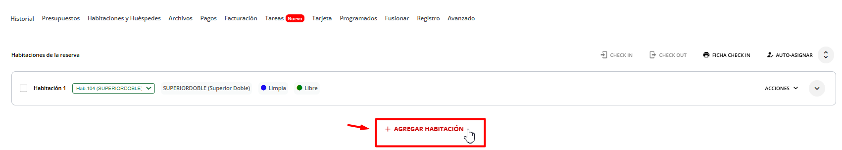 Sigue estos pasos para añadir una habitación a una reserva existente:1