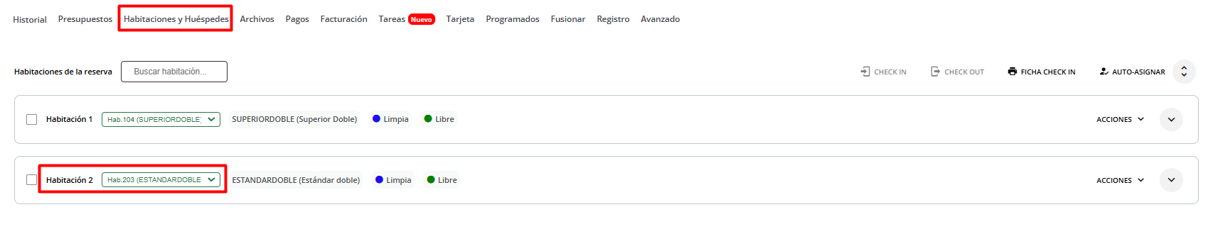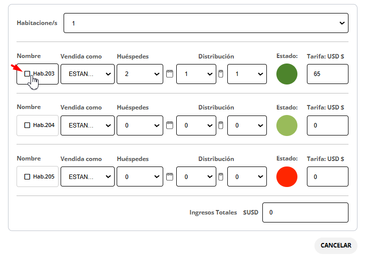 - Seleccionar manualmente la ocupación deseada entre las habitaciones físicas disponibles.