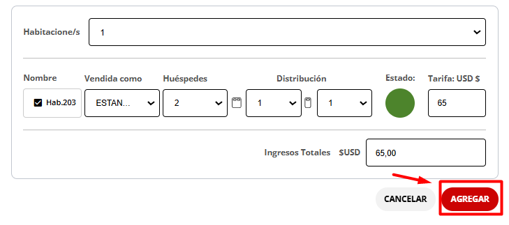 Una vez seleccionada la habitación, haz clic en el botón “Agregar” para incluirla en la reserva.