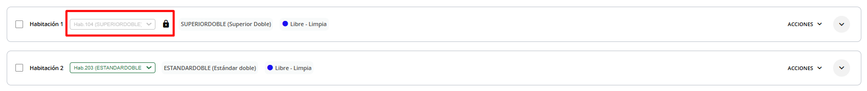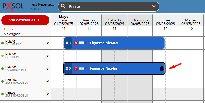 El estado de bloqueo de la habitación en la reserva se identificará de la siguiente manera: