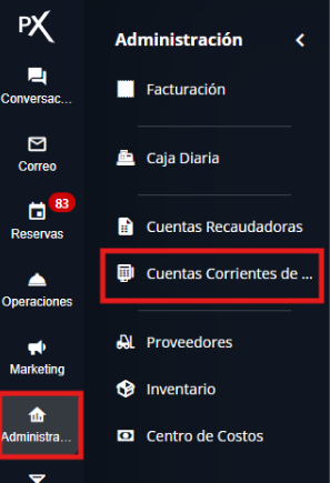 Ingresa a Administración - Cuentas Corrientes de Clientes.