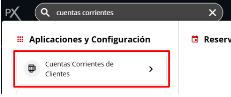 Alternativamente, puedes usar el buscador superior y escribir el nombre de la aplicación Cuentas Corrientes de Clientes.