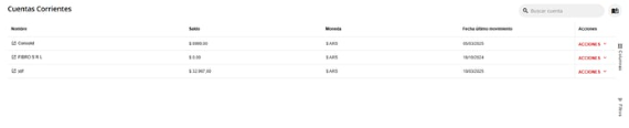 Se mostrará un listado de todas las Cuentas Corrientes configuradas.