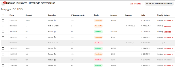 Se presentará el listado de movimientos registrados dentro de la cuenta seleccionada.