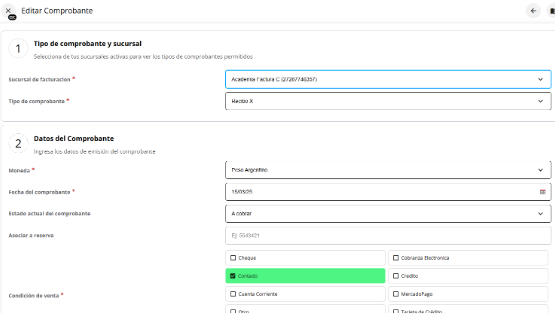 Completa los detalles del comprobante según sea necesario.