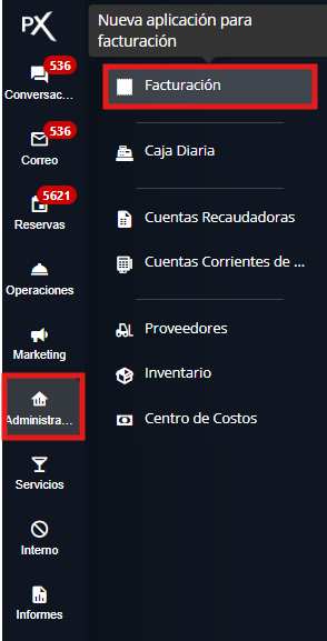 2. Dirígete a la sección Administración y selecciona Facturación.