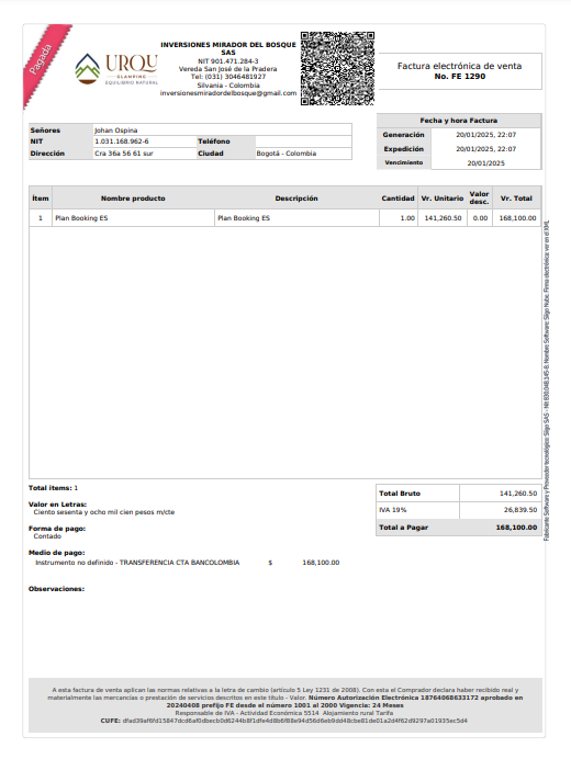Visualización de la factura emitida