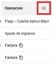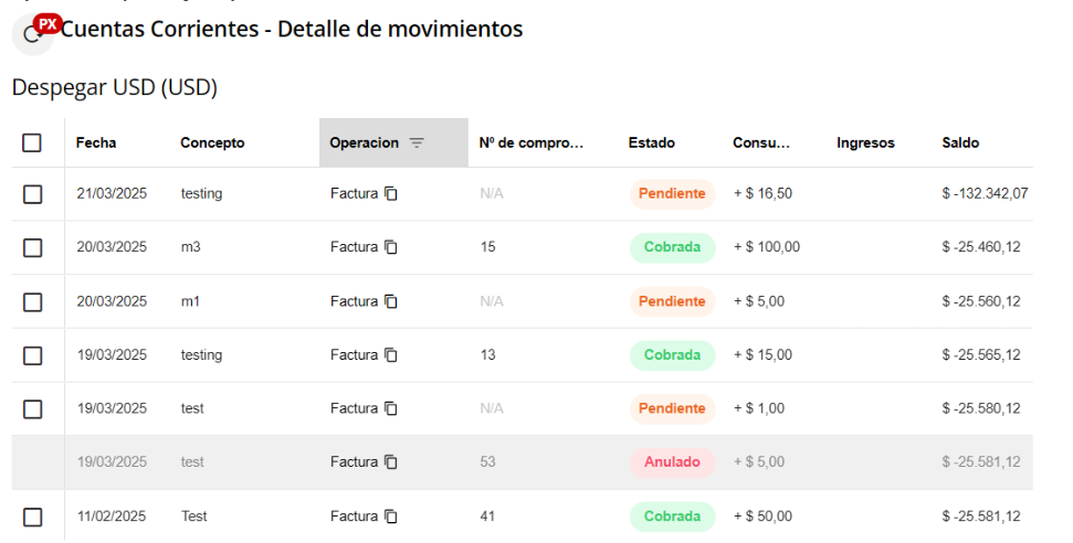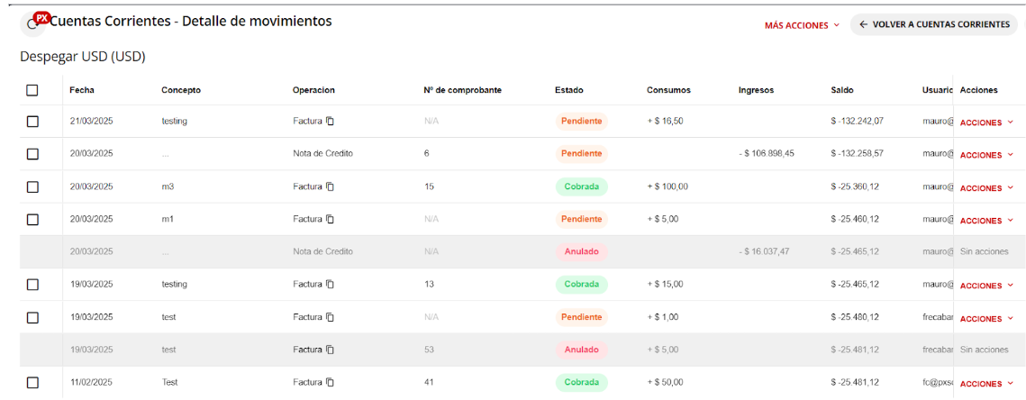 Se mostrará el listado de todos los movimientos realizados dentro de la cuenta seleccionada.