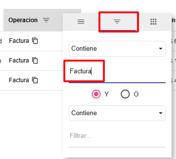 Sobre cada columna, al apoyar el cursor, podrás acceder a las configuraciones de esa columna. Selecciona Filtros para aplicar el criterio deseado.