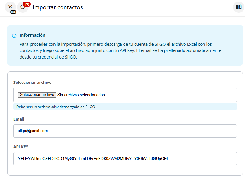 Para obtener los datos de mail y API KEY, puedes seguir los pasos de esta guía:¿Cómo obtener el Usuario API o API Access Key de SIIGO para realizar la integración de Facturación?