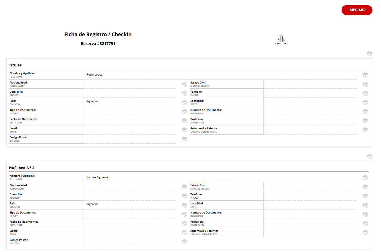 Se abrirá una nueva ventana con la ficha de registro. Si ya se dispone de información del huésped, esta aparecerá precompletada, y solo quedará por ingresar la información que falte.