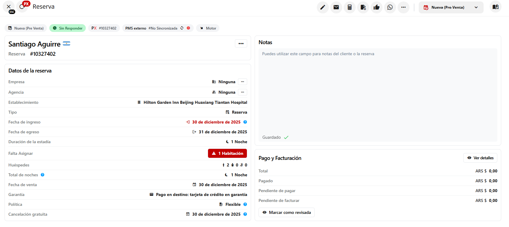 La tarifa de la reserva se actualizará automáticamente reflejando el nuevo tipo de cambio aplicado.