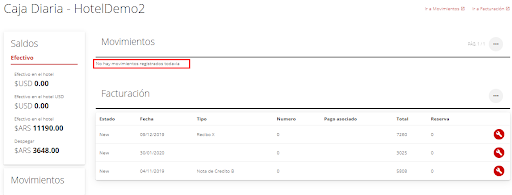 Tras completar la acción, la caja diaria no mostrará movimientos, indicando que el turno ha sido cerrado correctamente.