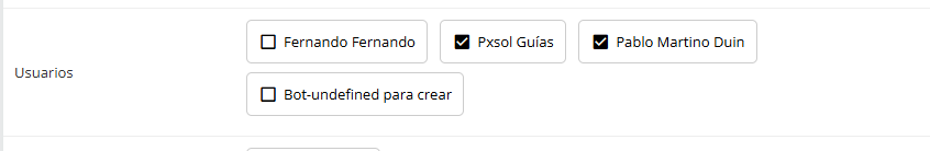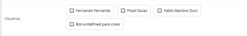 Una vez que hayas seleccionado todos los usuarios deseados, haz clic en el botón Guardar (o el botón equivalente que aparezca para confirmar los cambios).