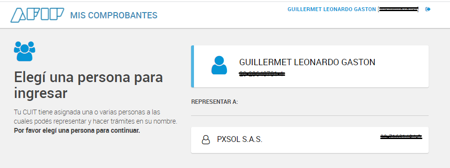 Elige la razón social para la cual deseas consultar los comprobantes.