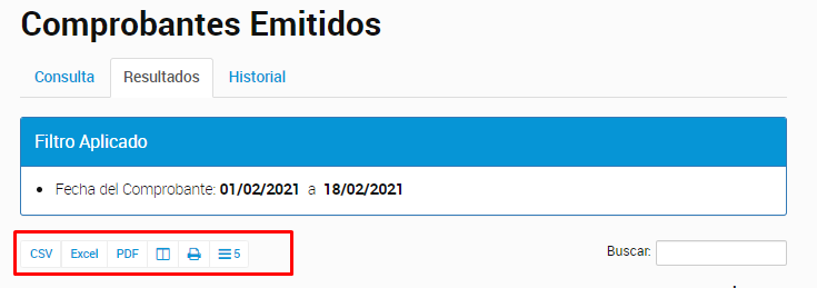 Verifica que todos los comprobantes emitidos dentro del período seleccionado se muestren en pantalla.