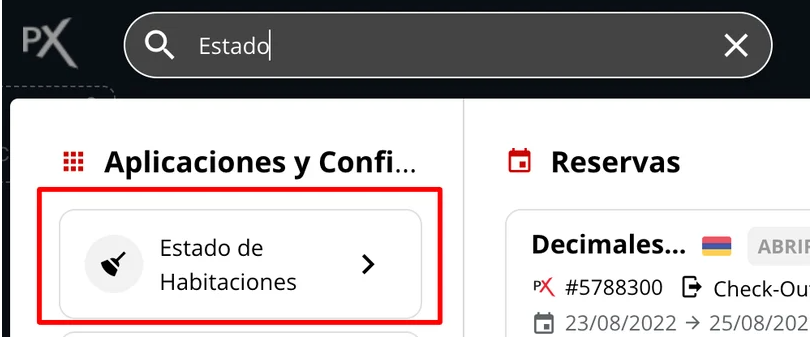Abrir la aplicación Estado de Habitaciones desde el buscador omnibox.