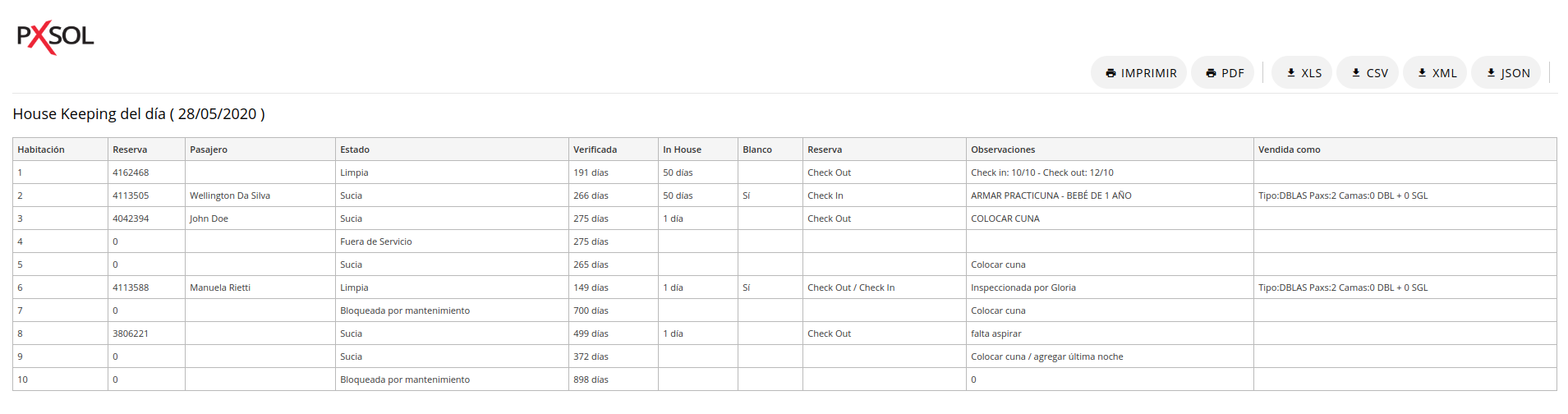 El informe de Housekeeping se abrirá en una nueva ventana mostrando la información del día actual.