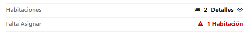 - Habitaciones: Indica la cantidad de habitaciones vendidas y su asignación. Las habitaciones sin asignar se muestran en rojo.