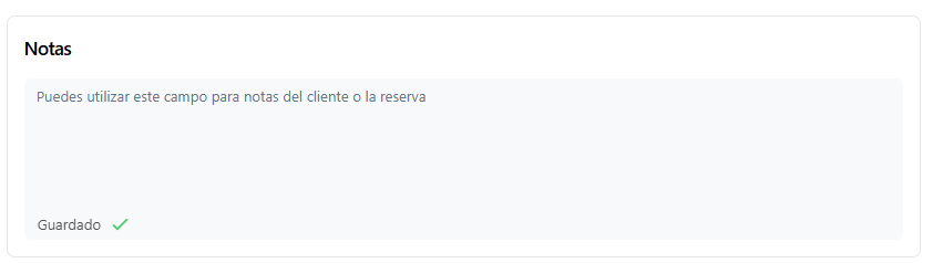 La cabecera de Reservas se divide en 3 secciones: Datos de la reserva, Notas, Pago y Facturación.